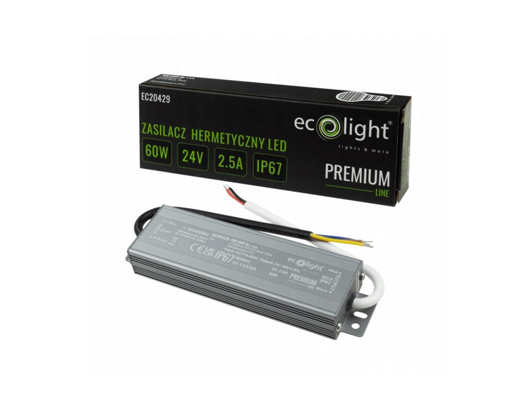 24V LED napájací zdroj hermetický 60W 2,5A vodotesný transformátor PREMIUM