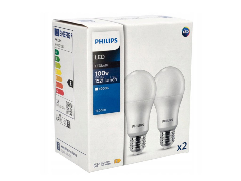 Súprava 2x LED žiaroviek Philips E27 13W = 100W s neutrálnou bielou farbou (4000K) je účinný zdroj svetla, ideálny do miestností vyžadujúcich jasné, ale príjemné osvetlenie.