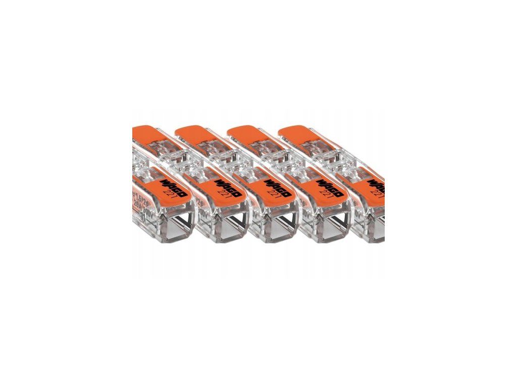 Sada 5 univerzálnych, kompaktných inštalačných konektorov WAGO série 221. Umožňujú rýchle a bezpečné pripojenie lankových a pevných vodičov. Vďaka svojim zmenšeným rozmerom sú ideálne do stiesnených priestorov.