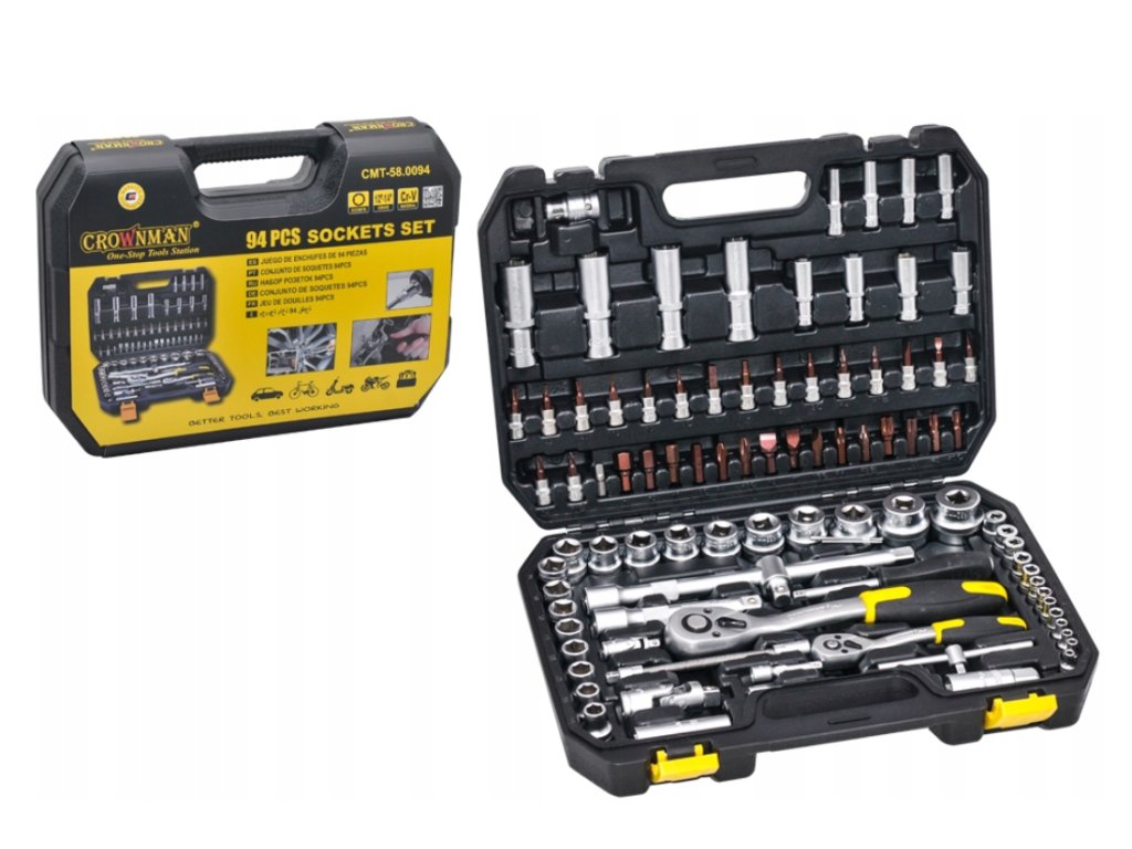 Box na náradie 94 položiek ⭐️Skvelá cena⭐️94dielna sada náradia CROWNMAN je kompletná sada nástrčných kľúčov, kľúčov a bitov, ktoré sú nevyhnutné v dielni aj doma.