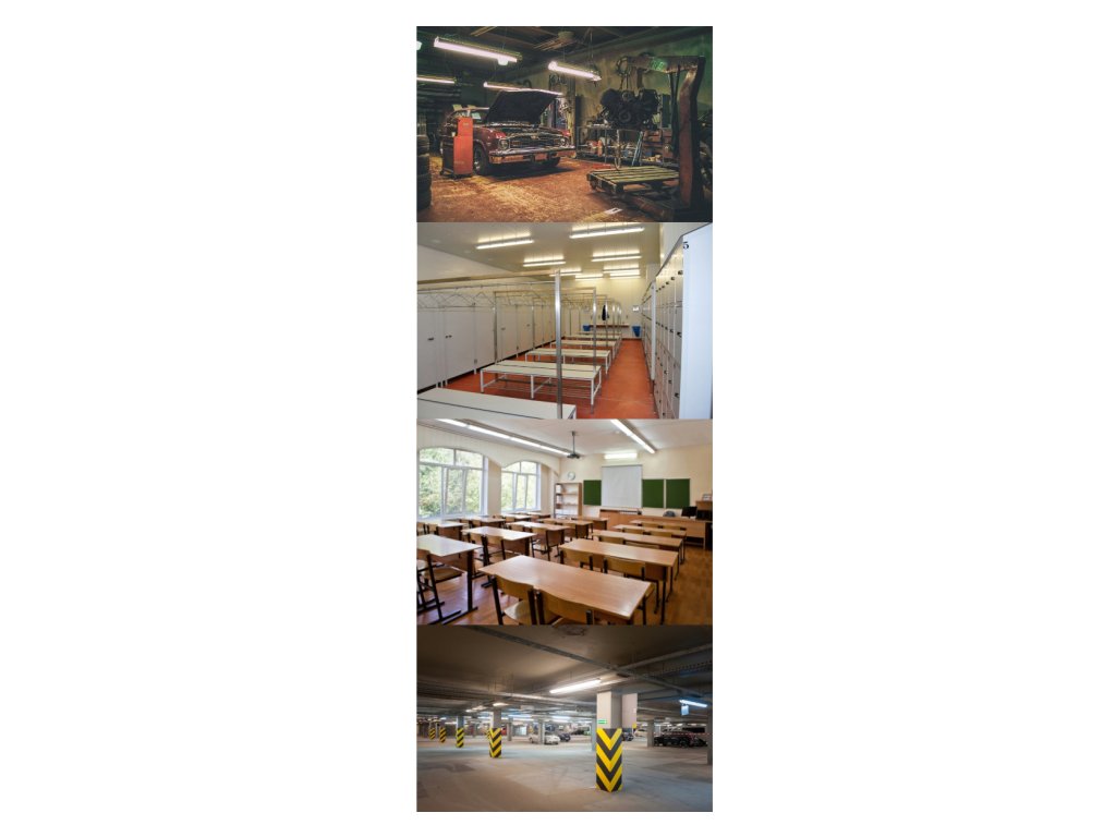 ✅Je ideálnym riešením pre použitie v miestach vystavených vlhkosti, prachu, ďalej v priemyselných zónach, garážach, skladoch, chladiarňach alebo verejných priestoroch.