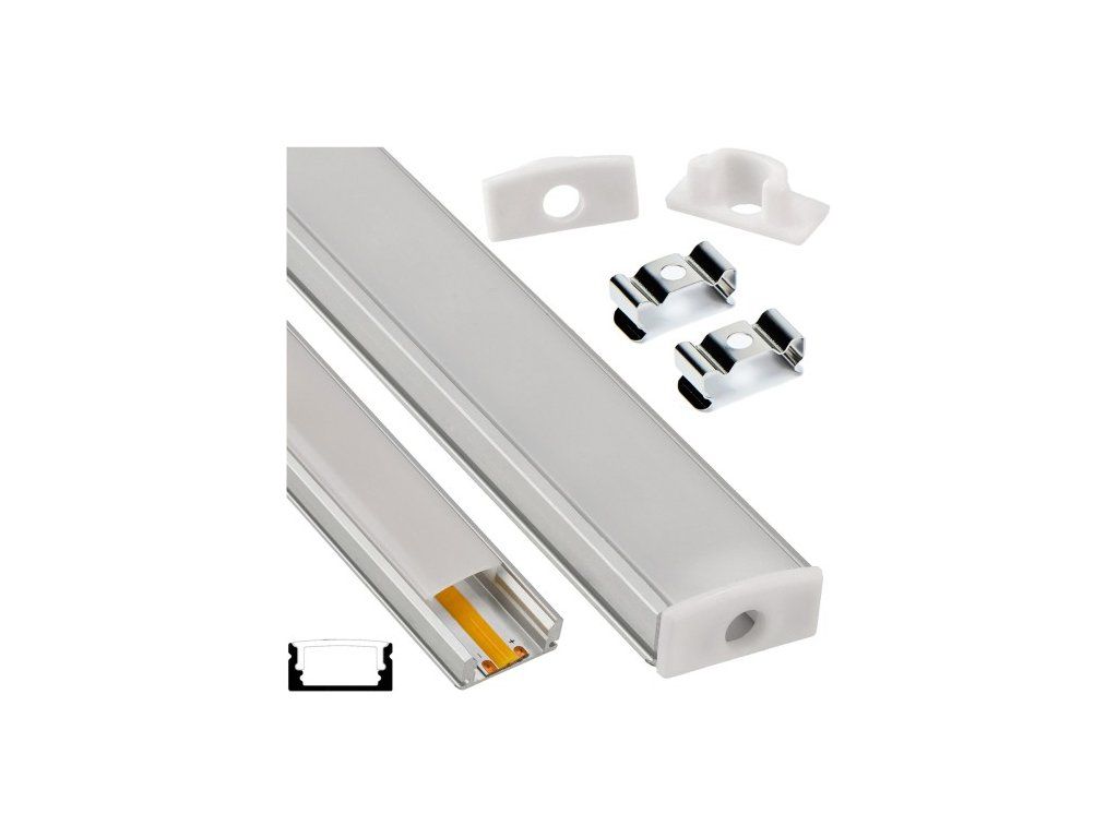 Hliníkový LED profil pre povrchovo montovaný zapustený pás s mliečnym krytom, sada 2m