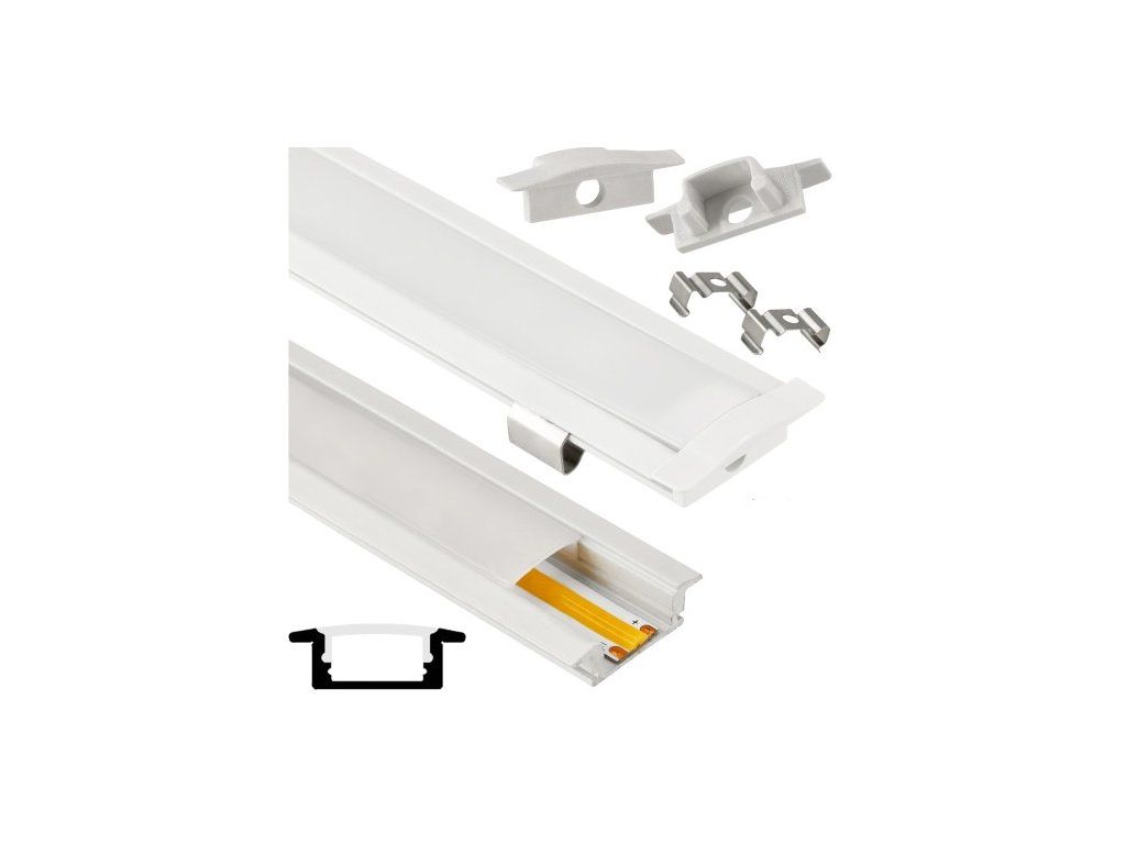 Hliníkový profil pre LED pásik, biely zapustený opálový difúzor, sada 2m
