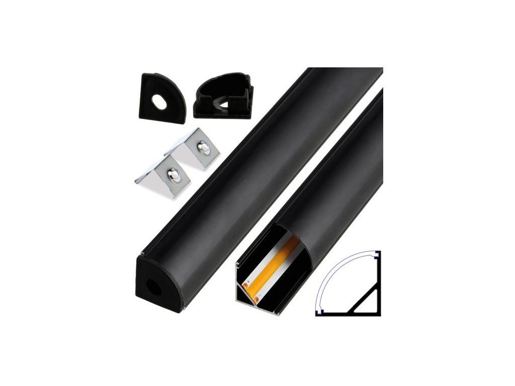 Hliníkový profil pre LED pásik 8 a 10 mm, rohový, šikmý, čierny, sada 2m