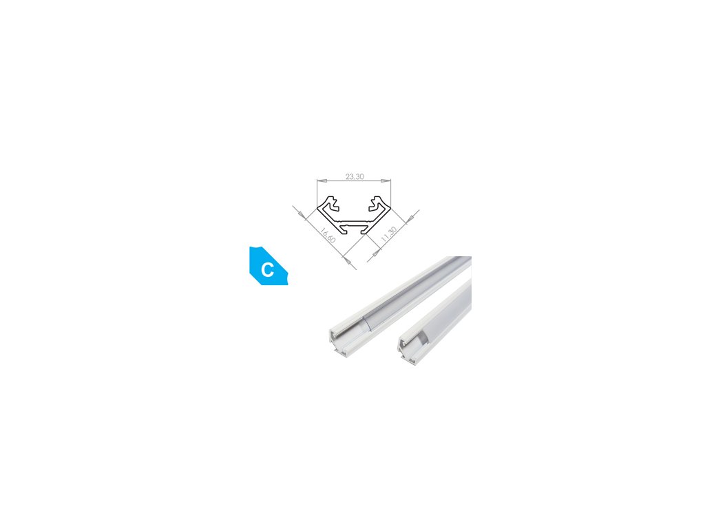 Hliníkový Profil pre LED pásky C Rohový Lakovaný biely 2m