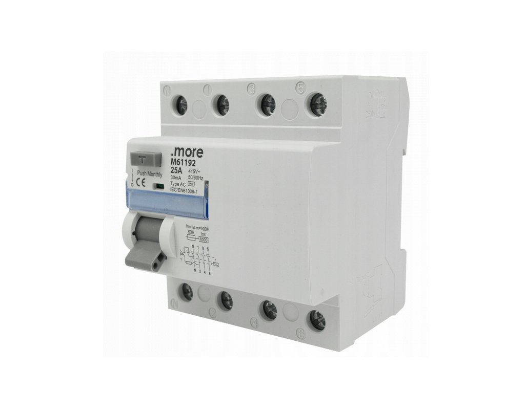 Diferenčný istič 25A 30mA 4P AC 6kA je spoľahlivou ochranou pred úrazom elektrickým prúdom a účinkami úniku prúdu v trojfázových inštaláciách. Pomocou technológie AC detekuje štandardné sínusové zvodové prúdy, vďaka čomu je vynikajúcou voľbou pre širokú škálu aplikácií.