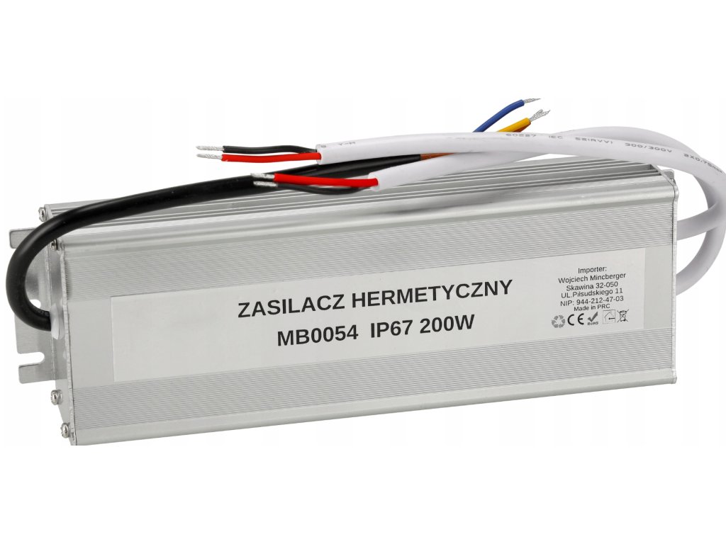 - Model : LED Hermetický napájací zdroj 200W 16,67A 12V DC