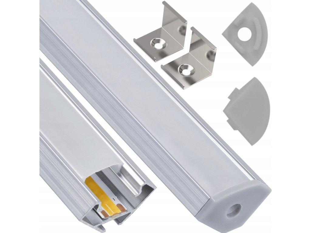 LED hliníkový profil rohový 2m biely - sada