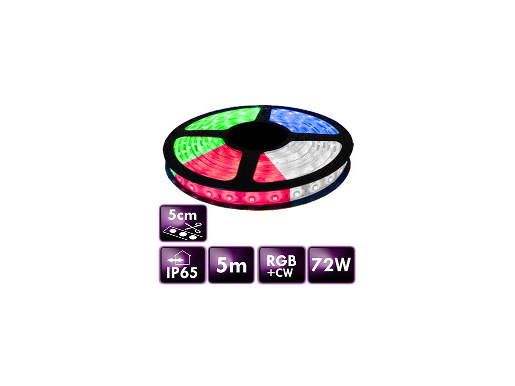 LED pásik - SMD 5050 - RGB+CW - 5 m - 60 LED/m - 14,4 W/m - IP65