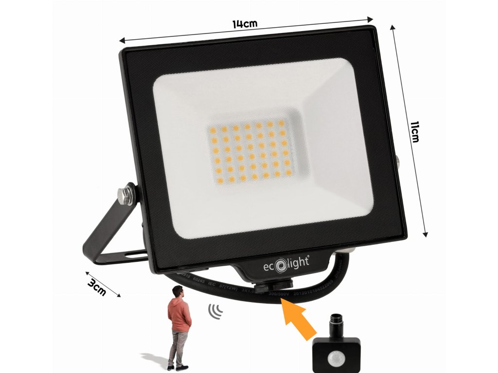 Voliteľný pohybový senzor: Náš LED svetlomet ponúka možnosť pridať PIR pohybový senzor (nie je súčasťou dodávky), ktorý umožňuje automatické rozsvietenie svetla pri detekcii pohybu, čo je ideálne na zvýšenie bezpečnosti a úspory energie. Technické dáta:
