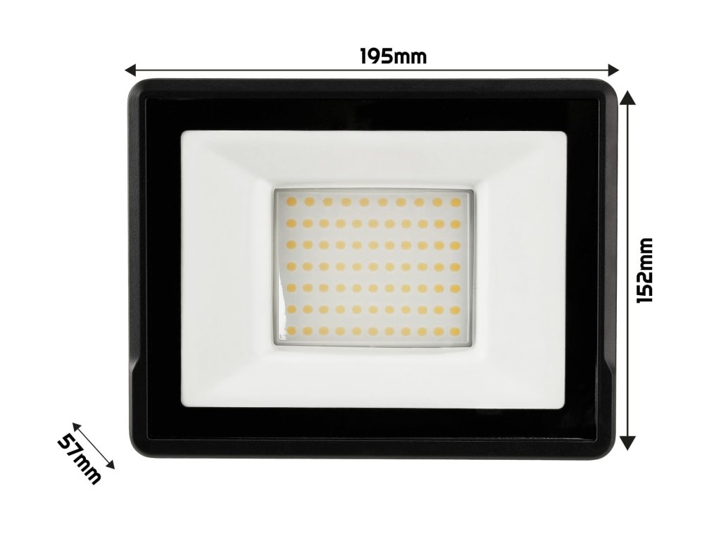 Technické údaje: Model: LED svetlomet 50W 5500lm Odolný a účinný Napájacie napätie: 220V-240V 50-60 Hz Svetelný tok: 5500lm 110lm/W Materiál: hliník , sklenený kryt Trieda tesnosti: IP65 (možno použiť aj vonku uhol: 120° Výstupný výkon: 50W Farba svetla: neutrálna 4500K Certifikáty: CE, RoHS