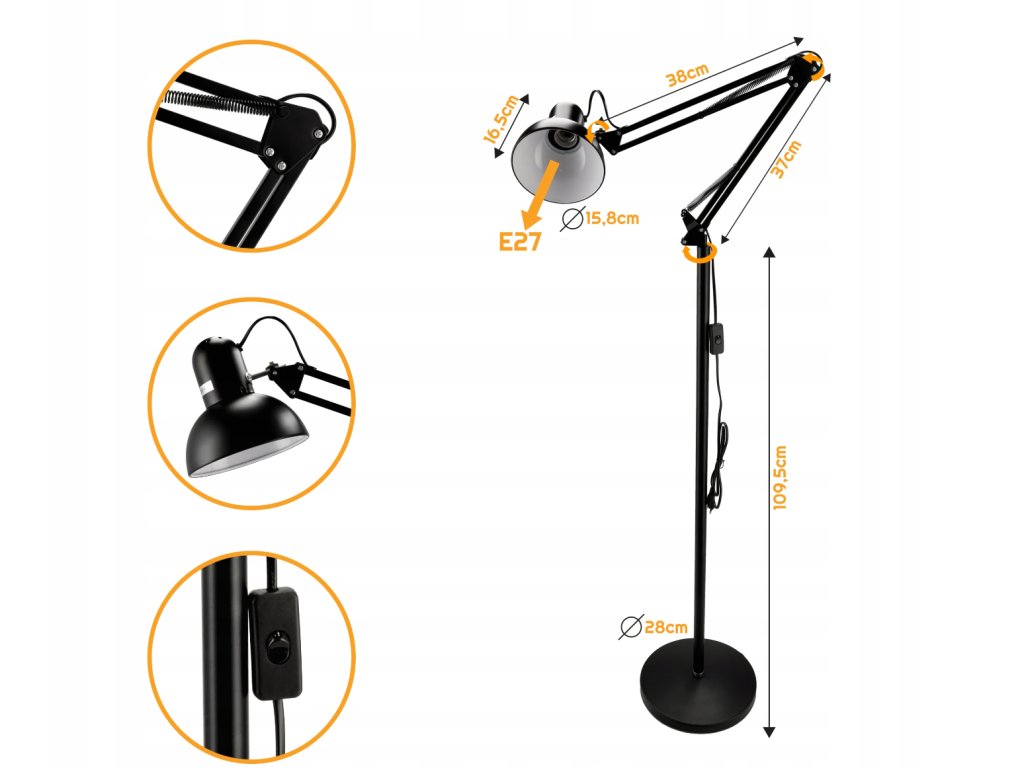 Toto svietidlo poskytne nielen funkčné osvetlenie, ale stane sa aj nevyhnutným dekoratívnym prvkom vo vašom interiéri. Jeho nastaviteľná konštrukcia vám umožní vytvoriť rozmanité osvetlenie, zatiaľ čo oceľový materiál mu dodá moderný šarm. Stojacia lampa 185CM s možnosťou nastavenia je určená pre tých, ktorí hľadajú harmóniu medzi funkčnosťou a estetikou a dodávajú svojmu okoliu jedinečný pôvab. Technické špecifikácie: Svietidlo je vyrobené z vysoko kvalitného materiálu: Zdroj svetla: 1xE27 (žiarovka E27 nie je súčasťou dodávky) Vstupné napätie: 1,5 V: 230V Maximálny príkon: 40W Materiál: Oceľ