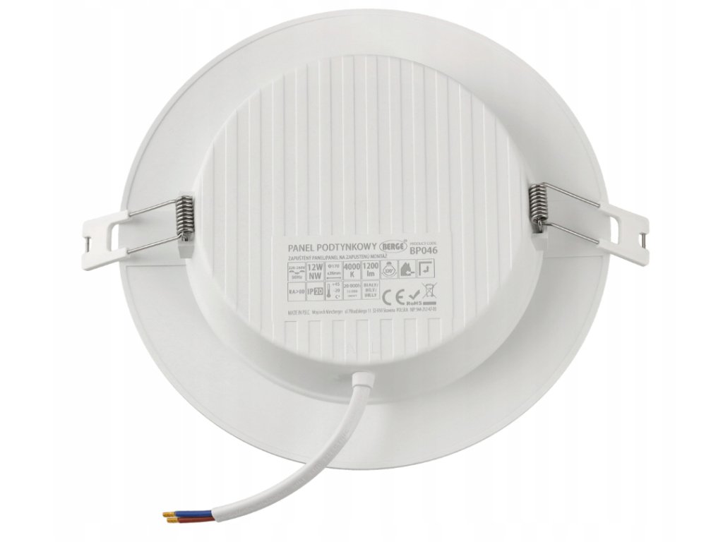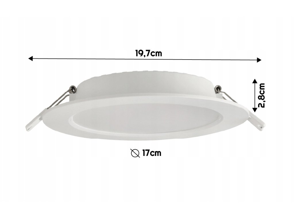 ✅ Dane techniczneRodzaj: downlight LED podtynkowy Moc: 12W Strumień świetlny: 1200 lm Barwa światła: biała neutralna Temperatura barwowa: 4000K Napięcie wejściowe: 220–240V AC Stopień szczelności: IP20 Materiał: tworzywo sztuczne Klosz: mleczny Kolor oprawy: biały Kształt: okrągły CRI: ≥80 PF: >0.5 Otwór montażowy: Ø155 mm Wymiary zewnętrzne: Ø170 × 28 mm Klasa energetyczna: F |