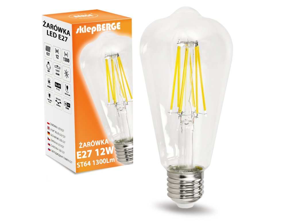 Dekoratívna LED žiarovka E27 12W ST64 Filament je osvetľovací výrobok, ktorý bol navrhnutý pre použitie v rôznych typoch lámp a svietidiel so závitom E27.