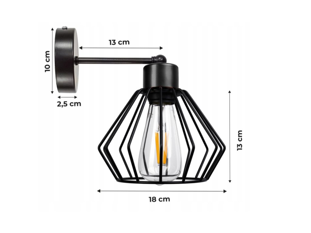 Nástenná lampa - kinkiet - E27 - BRYLANT - čierna