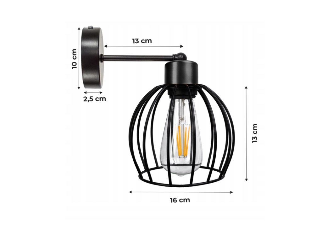 Nástenná lampa - kinkiet - E27 - KULA - čierna
