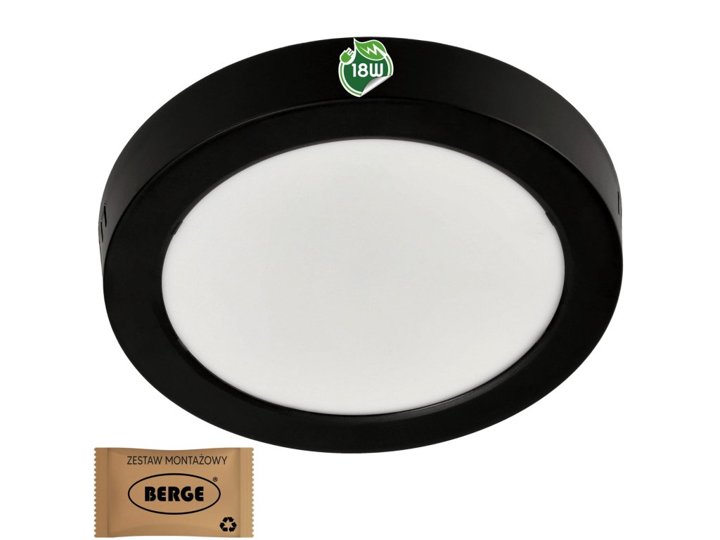 Technické údaje: výstupný výkon - 18W napájacie napätie - 220V-240V farba svietidla - čierny typ montáže - prisadená farba svetla - Neutrálny svetelný tok 4000K; 1980lm materiál - plast životnosť - 20 000 hodín počet cyklov zapnutia/vypnutia - 15 000x certifikáty - CE, RoHS