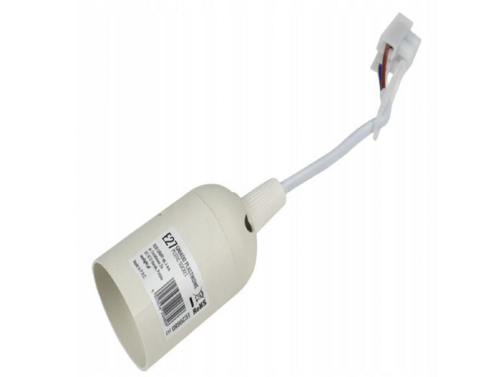 Plastová objímka E27 so závesom - funkčné a estetické riešenie pre svojpomocnú montáž osvetlenia.