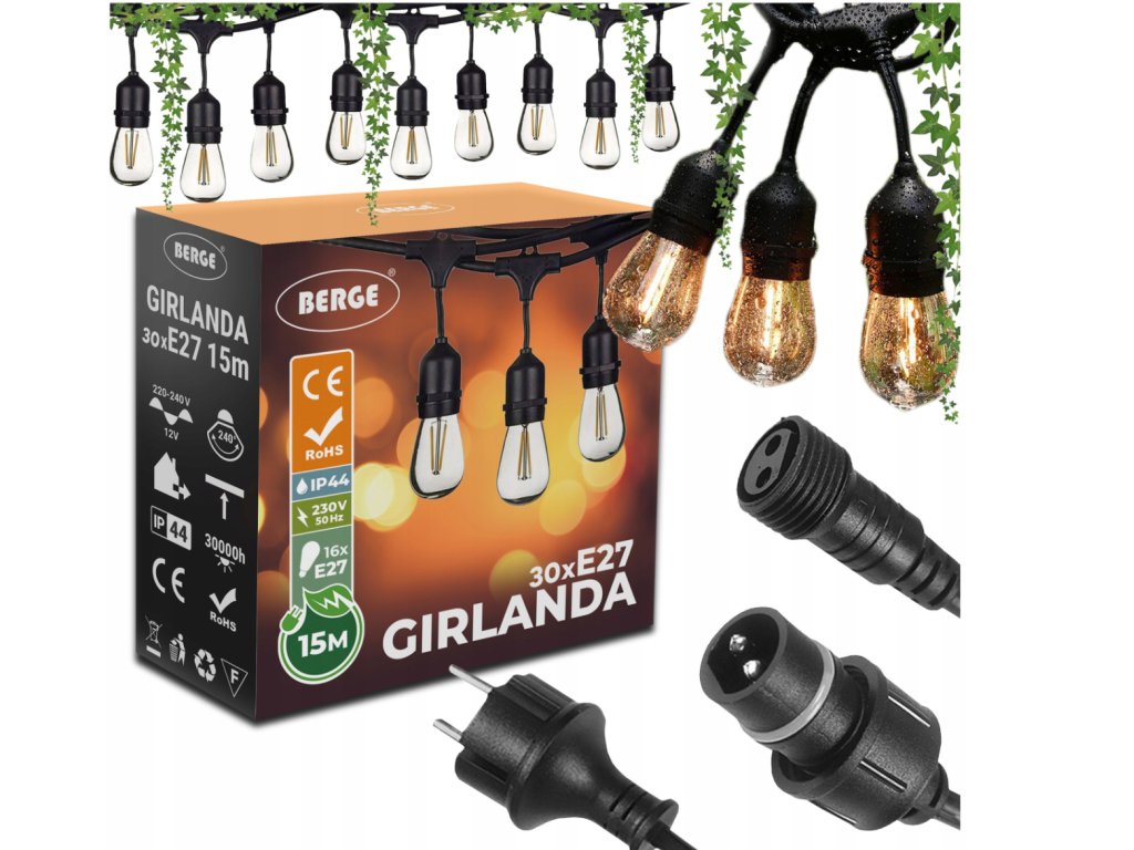 Kompatibilný s girlandami a svetelnými reťazami Berge.