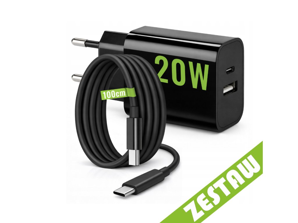 Sada: rýchla sieťová nabíjačka USB / USB-C / USB-A + kábel USB-C 1 m (100 cm), 20 W