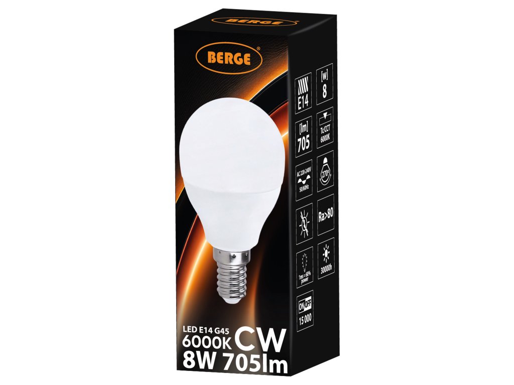 ✨Cenový hit✨ModernéLED žiarovka G45 s päticou E148W je energeticky úsporná alternatíva ku klasickým žiarovkám s výkonom približne 60W. Vďakavysoká svetelná účinnosť – až 705 lm, poskytuje intenzívne, studené biele svetlo s farebnou teplotou6000 000, ideálne na osvetlenie miest vyžadujúcich presnosť a jasnosť svetla. ✔️ Hlavné vlastnosti produktu: