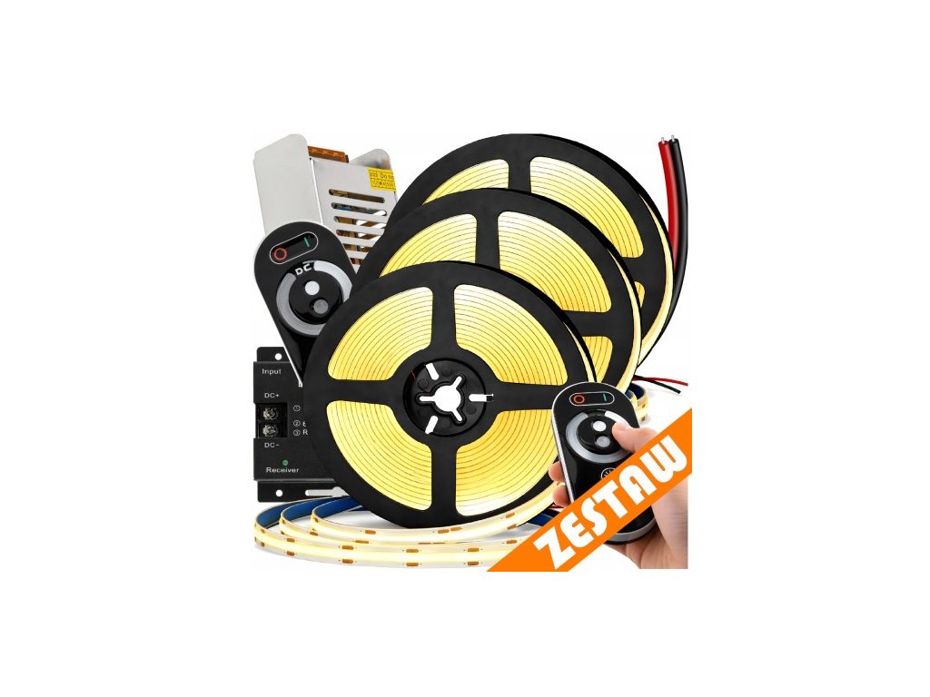 Taśma LED 15m COB Neon 12V 180W MOCNE JASNE ŚWIATŁO ZASILACZ PILOT ZESTAW Zawiera baterie nie