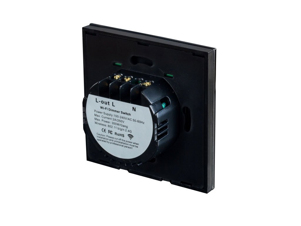 Sklenený nástenný dotykový stmievač WIFI - čierny