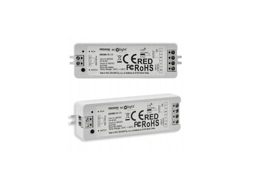 Umožňuje vám spracovať väčšie úseky LED pásikov a získať výkon od 40 W do 288 W – v závislosti od použitého napätia.