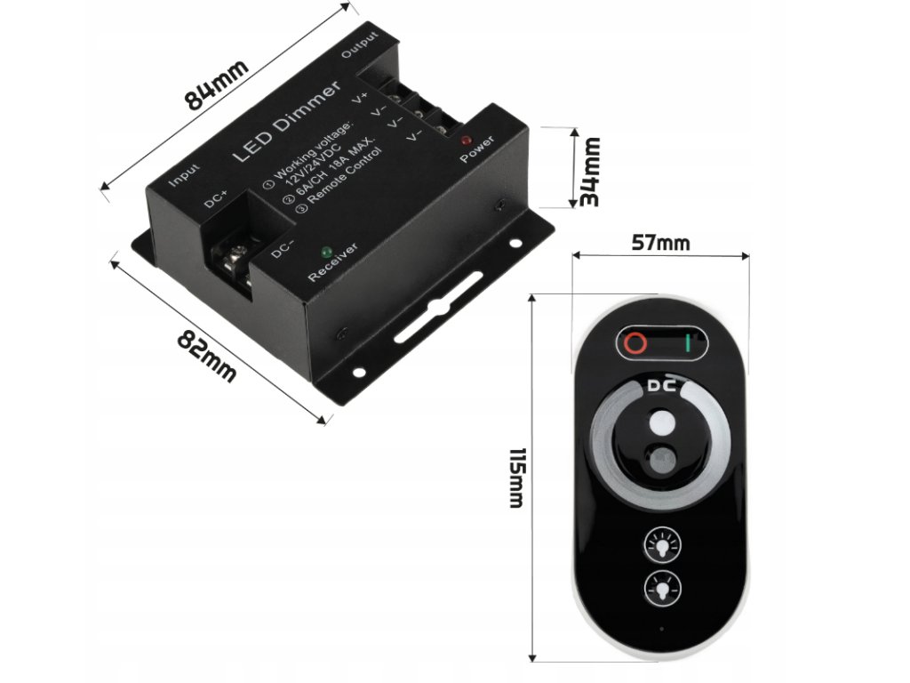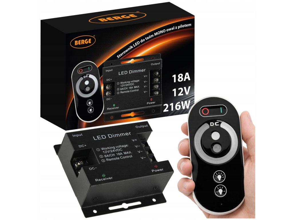 ⭐ Dlaczego warto?Ściemniacz 18A to uniwersalne i praktyczne rozwiązanie do sterowania taśmami LED mono o dużej mocy. Dzięki technologii radiowej RF oraz dotykowemu pilotowi obsługa jest szybka i wygodna, nawet z większej odległości. Pamięć ustawień zwiększa komfort codziennego użytkowania, a szeroki zakres napięć 12V / 24V pozwala dopasować sterownik do różnych instalacji LED. To korzystny wybór w porównaniu do prostych ściemniaczy bez pilota i bez pamięci. | |