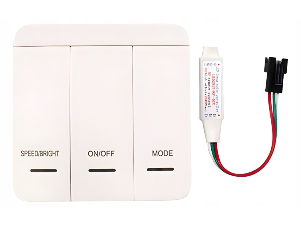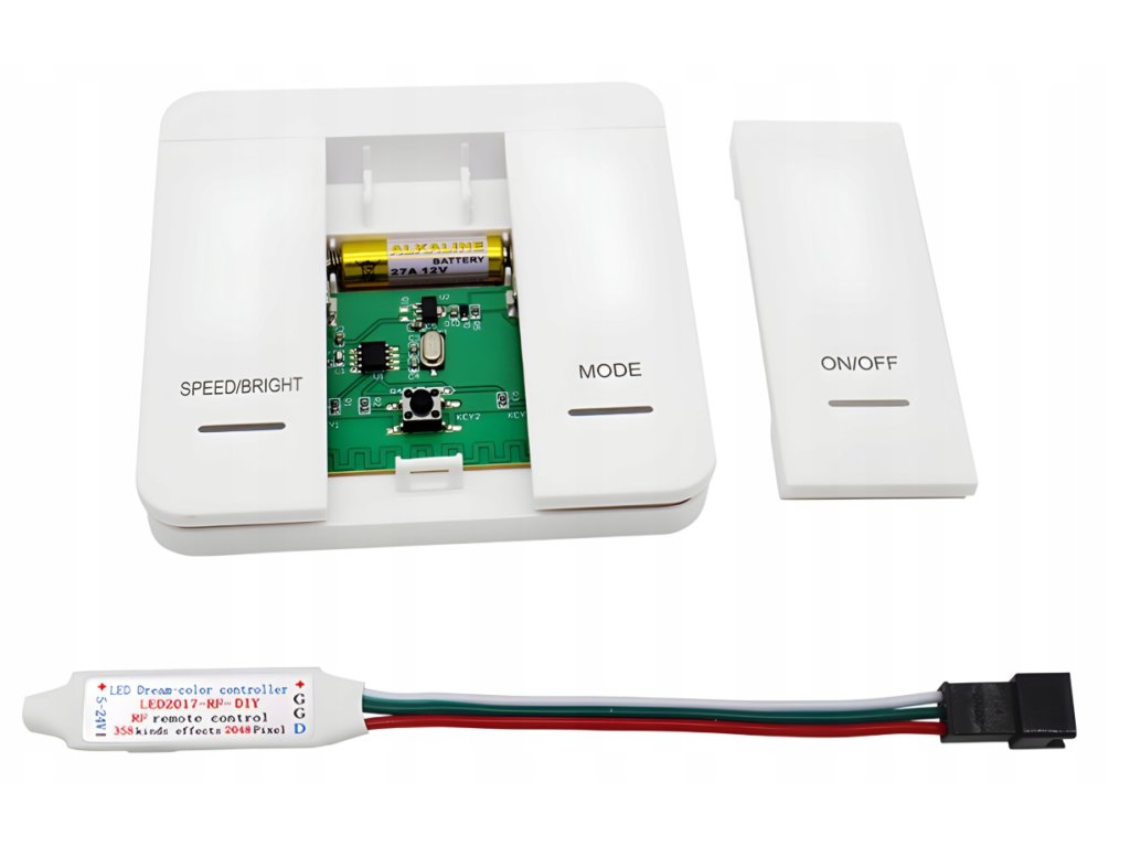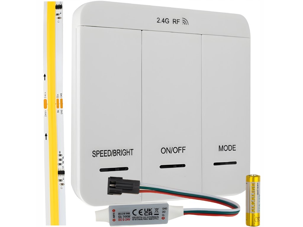 ❓ FAQ – najczęściej zadawane pytaniaCzy sterownik obsługuje taśmy RGB? Nie. Model jest przeznaczony wyłącznie do taśm LED MONO (jednokolorowych). Czy bateria jest w zestawie? Tak. Czy sterownik zapamiętuje ustawienia po wyłączeniu zasilania? Tak, posiada funkcję pamięci ostatnich ustawień (zakres zależny od pilota/aplikacji). Jaką maksymalną moc taśmy LED można podłączyć? Do 30W przy 5V, 72W przy 12V oraz 144W przy 24V. | |