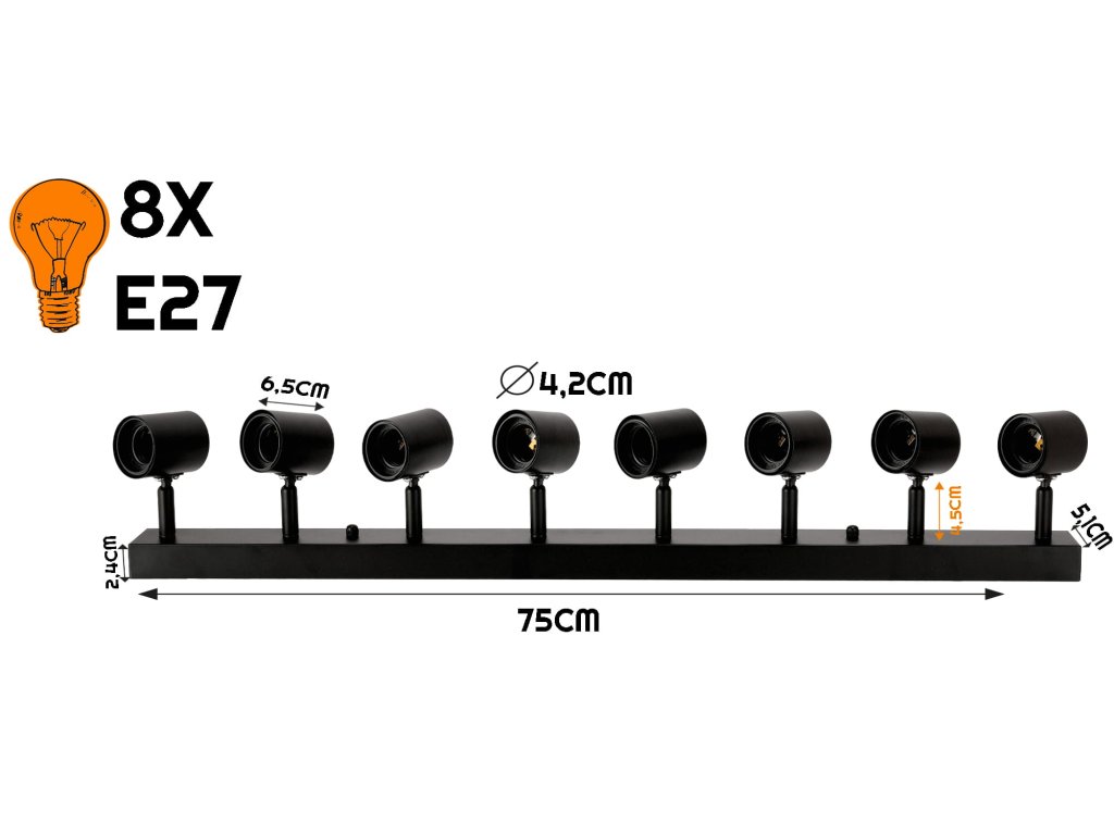 Svietidlo sa skladá z matnej čiernej lišty , na ktorú je možné umiestniť svetelný zdroj E27 a zaistiť tak energeticky úsporné osvetlenie miestnosti.