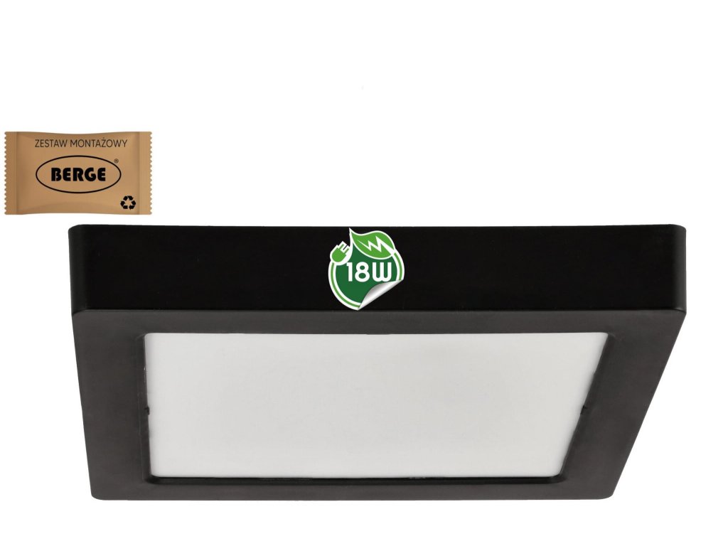 Technické údaje: výstupný výkon - 18W napájacie napätie - 220V-240V farba svietidla - čierny typ montáže - prisadená farba svetla - Neutrálny svetelný tok 4000K; 1980lm materiál - plast životnosť - 20 000 hodín počet cyklov zapnutia/vypnutia - 15 000x certifikáty - CE, RoHS