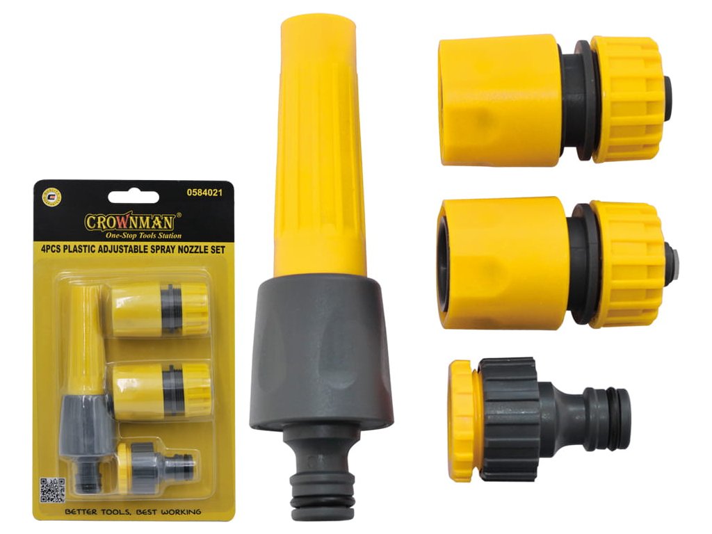Technické údaje: Sada obsahuje 4 záhradné konektory pre pripojenie hadice Materiál: plast Použitie: Perfektné pre postrek záhrady, umývanie auta Na hadicu 1/2 Na kohútik 1/2 3/4