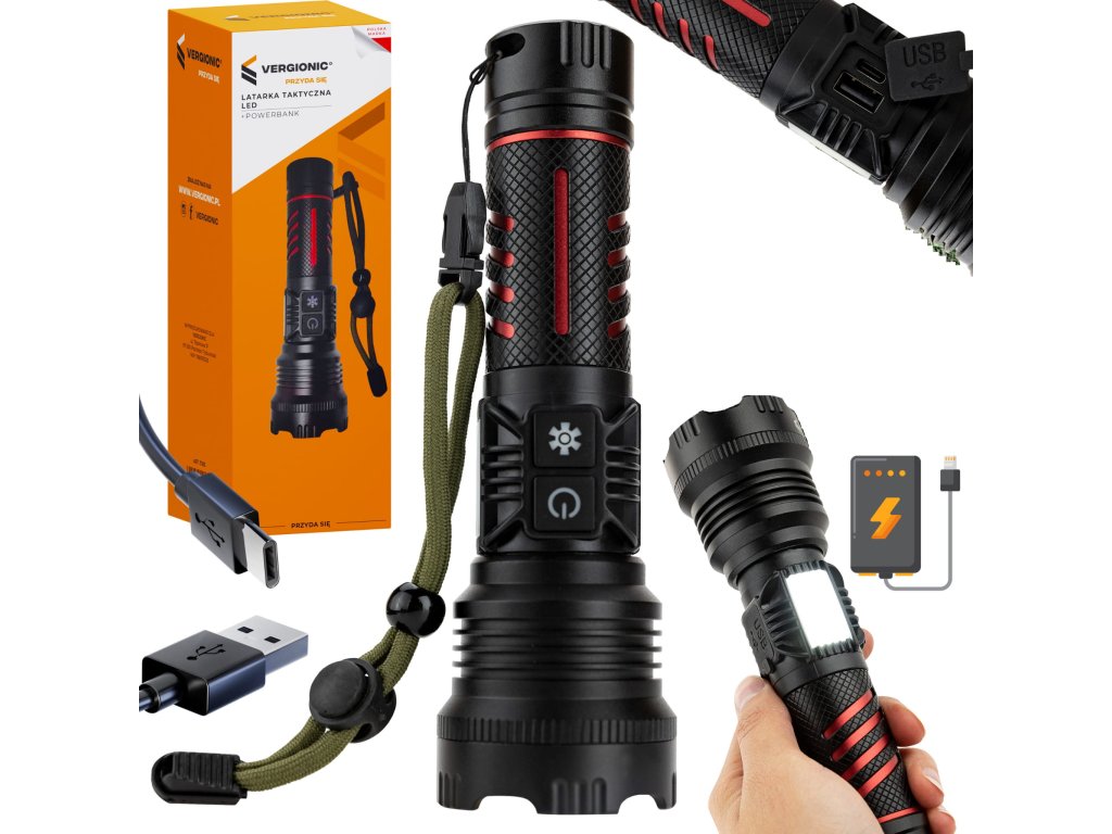 Taktické LED svietidlo je všestranný nástroj, ktorý kombinuje vynikajúci jas, odolnosť a...funkcia powerbanky.
