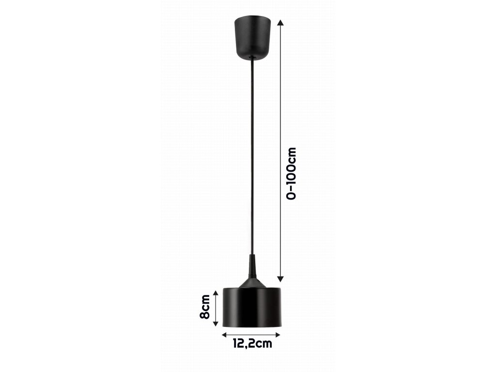 Technické údaje: napájacie napätie: 230V svetelný zdroj: 1 x E27 materiál - kov + hliník farba montáže - čierna max. dĺžka: 100cm (možno upraviť) súčasťou balenia žiarovky - nemožno nastaviť priehyb: áno maximálny výkon jedného svetelného zdroja: 60W pre žiarovky volfrám / 20W LED certifikáty - CE, RoHS